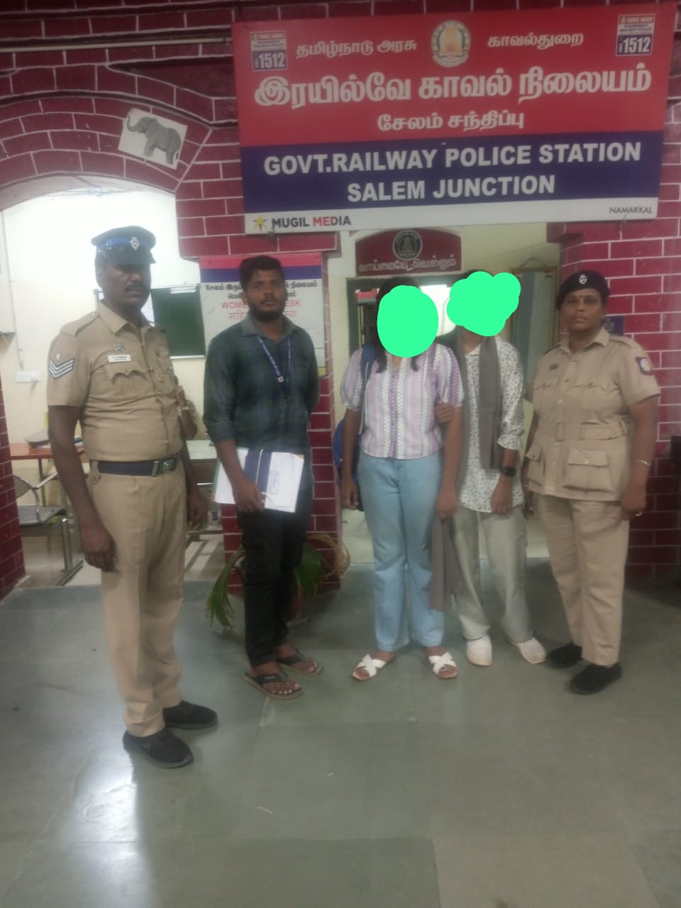 இந்த நிலையில் எர்ணாகுளம் முதல் பெங்களூரு பானஸ்வாடி வரை செல்லும் ரயிலில் சிறுமிகள் வருவதற்கு வாய்ப்பு உள்ளது என சேலம் ரயில்வே போலீசாருக்கு கேரளம் ரயில்வே போலீசார் கொடுத்த தகவல் மற்றும் புகைப்படங்கள் அடிப்படையாக வைத்துக் கொண்டு சேலம் ரயில்வே போலீசார் கேரள மாநில சிறுமியை மீட்பதற்கு முழு வீச்சுடன் சேலம் ரயில் நிலையத்தில் காத்திருந்தனர்.