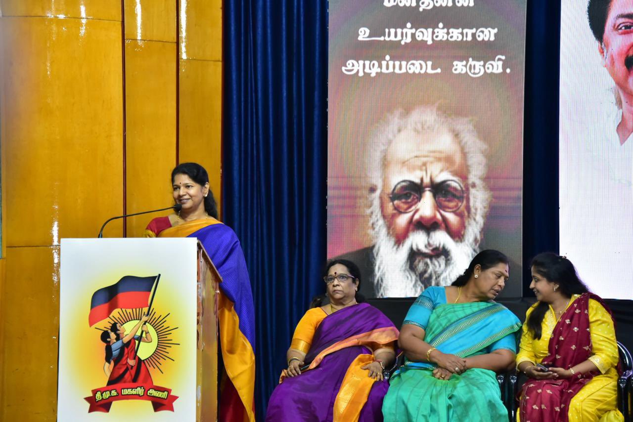 சென்னை தென்மேற்கு மாவட்ட திமுக மகளிரணி சார்பில் நடைபெற் இளம் பெண்கள் பாசறைக் கூட்டத்தில் அக்கட்சியின் துணை பொதுச்செயலாளர் கனிமொழி கலந்து கொண்டு பேசினார். அப்போது அவர் கூறியதாவது:- இன்றைக்கு திராவிட மாடல் ஆட்சி என்பது பல பேருக்கு பிடிக்காத ஆட்சியாக உள்ளது. அதற்கு பல விமர்சனங்கள் வைத்துக்கொண்டு உள்ளனர். அந்த வார்த்தைக்கு பின்னால் இருக்கக்கூடிய வரலாற்றை தெரிந்துகொள்ள வேண்டும். வாக்குரிமைக்காக பல நாடுகளில் பெண்கள் பல்வேறு போராட்டங்களை நடத்தினர். இவ்வளவு போராட்டத்திற்கு பின்னர்தான் பெண்களுக்கு வாக்குரிமை கிடைத்தது. ஆனால் இந்தியாவில் முதன் முறையாக 1920ல் நீதிகட்சி ஆட்சிக்காலத்தில் தமிழகத்தில் எந்தவித போராட்டமும் இன்றி வழங்கப்பட்டது.