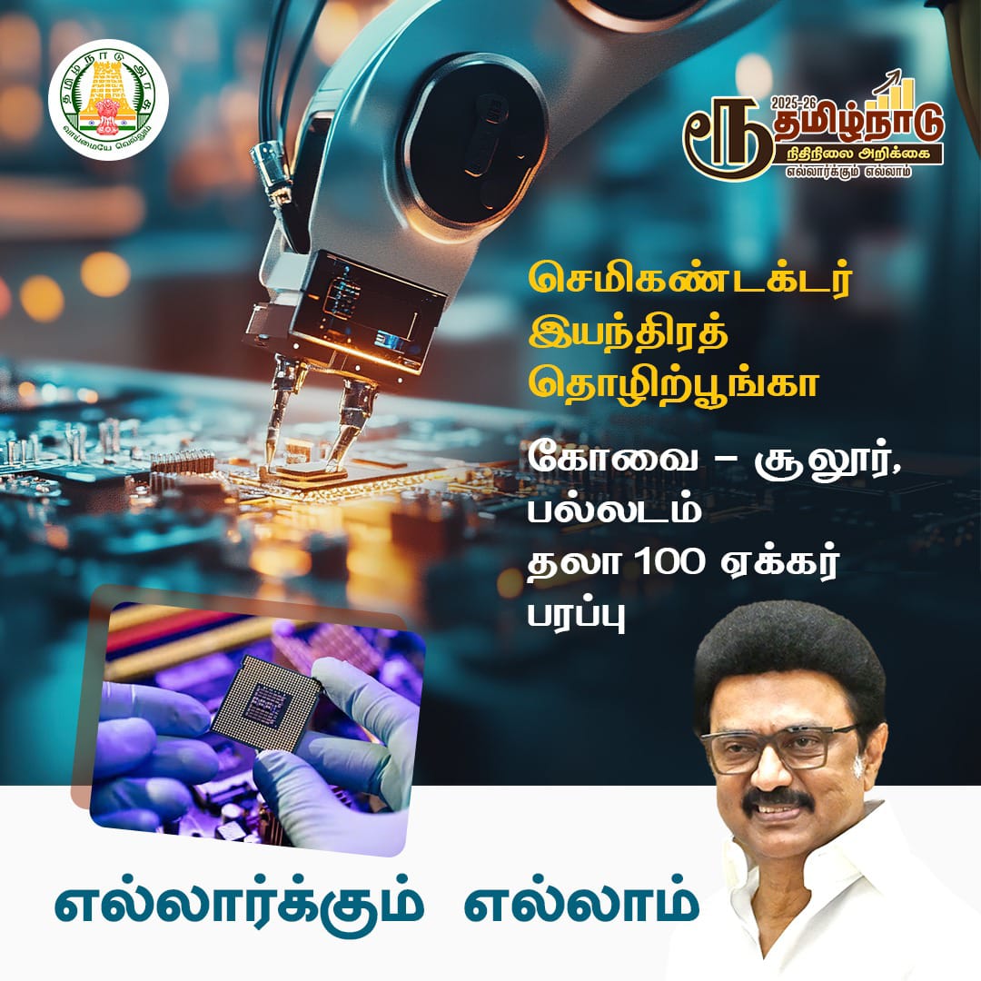 தமிழ்நாடு நிதிநிலை அறிக்கையில் இடம்பெற்றுள்ள முக்கியத்துவம் வாய்ந்த விஷயங்கள் குறித்து பதிப்பாளர் ஆழி செந்தில்நான் அளித்துள்ள நேர்காணலில் கூறியிருப்பதாவது:- 2025-2026ஆம் நிதியாண்டிற்கான தமிழ்நாடு பட்ஜெட்டில் உள்கட்டமைப்பு மேம்பாட்டுடன், மாநிலம் முழுக்க வளர்ச்சியை ஏற்படுத்தக்கூடிய ஒரு தொழிற்துறை கொள்கையை தெரிவித்துள்ளனர். சென்னை மட்டுமின்றி கன்னியாகுமரி, கோவை உள்ளிட்ட தமிழ்நாடு முழுவதும் புதிய தொழில் முயற்சிகள் அறிவிக்கப்பட்டுள்ளன. இந்த தொழில் முயற்சிகள் பழைய தொழிலாக இல்லாமல், இன்றைய காலகட்டத்தில் காலநிலை மாற்றத்தையும் அனுசரிக்கக்கூடிய புதிய தொழில்களாகும். ஏ.ஐ., ரோபோட்டிக்ஸ், ஏ.ஆர்.வி.ஆர் இதுபோன்ற புதிய தொழில்கள் உள்ளது. இவை ஒவ்வொன்றிலும் மிகப்பெரிய அளவில் முதலீட்டை ஈர்க்கவும், வளர்க்கவும் திட்டமிட்டுள்ளார்கள். நவீன தொழில்துறையில் தமிழ்நாட்டை வளர்ப்பதற்கு தேவையான உள்கட்டமைப்பு, டேட்டா சென்டர் தேவை. பட்ஜெட்டில் மிக முக்கியமாக செமி கண்டக்டர் பற்றி பேசியிருக்கிறார்கள். இந்தியாவுக்கு செமி கண்டக்டர் தொழில்நுட்பம் வர வேண்டும் என்பதற்காக 20 வருடங்களுக்கு முன்பாகவே முயற்சி எடுத்தவர்கள் திமுகவினர். 1990 காலகட்டத்தில் முரசொலி மாறன் நாங்குநேரியில் இண்டஸ்ட்ரியல் காரிடார் கொண்டுவர முயற்சி செய்து, பல்வேறு காரணங்களால் முடியாமல் போனது. அண்மையில் வர வேண்டியவற்றை எல்லாம் டெல்லியில் தடுத்து, குஜராத்தில் அமைக்க வைத்துவிட்டார்கள். ஆனால் திமுக அரசு செமி கண்டக்டருக்கான பங்கை பட்ஜெட்டில் உறுதிபடுத்தியுள்ளது.