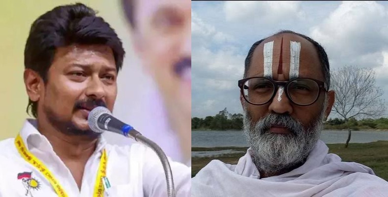 இந்த நிலையில் தான் தற்போது துணை முதலமைச்சர் உதயநிதி ஸ்டாலின், ஸ்ரீபெரும்புதூர் எம்பார் ஜீயர், துர்கா ஸ்டாலின் ஆகியோருக்கு எதிராக தனது எக்ஸ் சமுக வலைதள பக்கத்தில் அவதுறு கருத்துக்களை தெரிவித்து வீடியோ ஒன்றை வெளியிட்டுள்ளார். பாத பூஜை செய்து, பிராயசித்தம் செய்த உதயநிதி என்ற தலைப்பில் ரங்கராஜன் நரசிம்மன் வெளியிட்டுள்ள அந்த வீடியா சுமார் 20 நிமிடங்கள் கொண்டதாகும். அந்த வீடியோவில் முதல் 17 நிமிடங்களுக்கு உதயநிதி ஸ்டாலினை விமர்சித்து பேசுகிறார். சனாதனத்தை ஒழிப்போம் என்று பேசிய துணை முதலமைச்சர் உதயநிதி ஸ்டாலின், அதற்காக நீதிமன்றம் உள்ளிட்ட எங்கும் மன்னிப்பு கோரவில்லை. தனது கருத்தில் கடைசி வரை உறுதியாக உள்ளதாக தெரிவித்துவிட்டார்.