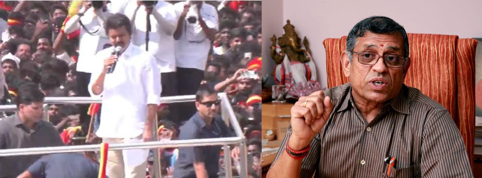 என்னை என்ன வேண்டும் என்றாலும் செய்துகொள்ளுங்கள். ஆனால் என் தொண்டர்கள் மீது கை வைக்காதீர்கள் என்று விஜய் சொன்ன டயலாகை நாம் கடைசியாக கூலி படம் வரை பார்த்துவிட்டோம். இது சட்டத்தின் ஆட்சி நடக்கிற நாடு என்கிற புரிதலே விஜயிடம் இல்லை. எப்.ஐ.ஆரில் விஜயின் பெயரே கிடையாது. அருணா ஜெகதீசன் ஆணையம் விஜய் மீது நடவடிக்கை எடுக்கலாம் என்று பரிந்துரைத்தாலோ, அல்லது இதுபோன்ற அரசியல் கட்சிகளின் தலைவர்களுக்கு வழிகாட்டு நெரிமுறைகளை வகுக்கலாம் என்றாலோ தான் அவர் உள்ளே வருவார். கரூரில் நடந்த நிகழ்வுகளுக்கு தார்மீக பொறுப்பேற்கிறேன் என்று கூட விஜய் மனசாட்சியோடு எங்கும் சொல்லவில்லை. சட்டம் சட்டம் என்று பேசிசுகிற விஜய் நான் வருகிறேன் சி.எம். என்கிறார். அவர் எங்கே பழி வாங்கினார்? அப்போது தவறாக திசை திருப்புகிறீர்கள். தான் துணிச்சலாக இருப்பதாக காட்டிக் கொள்வதற்காக ஒரு கோழைத்தனத்தை விஜய் பதுக்கி வைத்திருக்கிறார் என்றுதான் நான் பார்க்கிறேன். இத்தனை லட்சம் மக்கள் ஆராதிக்கும் ஒரு தலைவன் இப்படி ஒரு பொய்யை சொல்கிறார் என்றால்? அதை நிச்சயமாக கோழைத்தனம் என்றுதான் பார்க்கிறேன்.