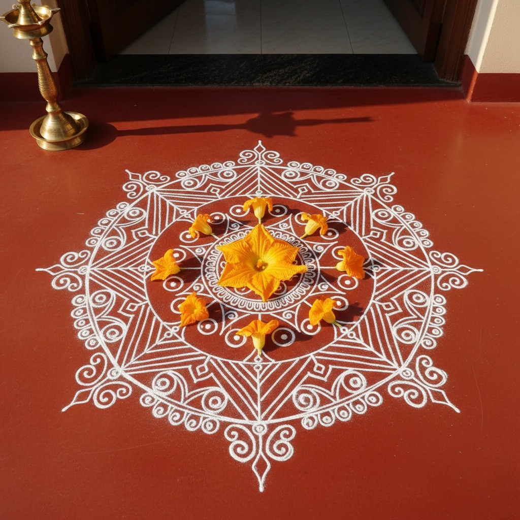 மார்கழி மாதத்தின் கலாச்சார அடையாளமாகத் திகழ்வது, அதிகாலைப் பனியில் வீட்டு வாசலில் பெண்கள் இடும் வண்ணமயமான மற்றும் பெரிய கோலங்கள் தான். இந்தக் கோலங்களின் நடுவே பூசணிப் பூக்களை வைப்பது பாரம்பரிய வழக்கமாகும். இந்த அதிகாலைப் பணிக்குக் காரணமான மார்கழி மாதத்தின் குளிர்ச்சி மற்றும் பனிப் பொழிவு உடலுக்கும், மனதிற்கும் புத்துணர்ச்சி அளிப்பதாகக் கருதப்படுகிறது.