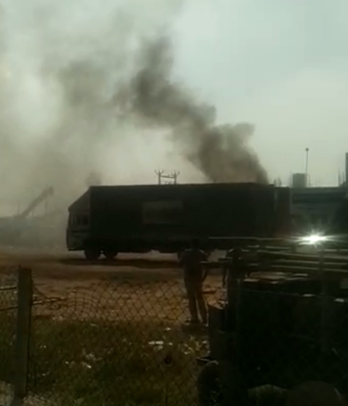 ஆவடியில் கண்டெய்னர் லாரியில் திடீர் தீ விபத்து