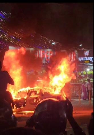அம்பத்தூர் அருகே சாலையில் திடீரென பற்றி எரிந்த சொகுசு கார்!