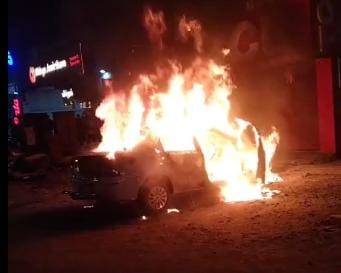 சென்னையை சேர்ந்த வாடகை கார் ஓட்டுநர் பாண்டியன் என்பவர் கோயம்பேட்டில்  இருந்து முகப்பேருக்கு வாடிக்கையாளரை ஏற்றிச்சென்றுள்ளார். அங்கு பயணியை இறக்கிய பின்னர் வாவின் அருகில் காரை சாலை ஓரமாக நிறுத்திவிட்டு டீ குடிப்பதற்காக சென்று உள்ளார். அப்போது திடீரென அவரது காரிலிருந்து கரும்புகை வெளியேறி உள்ளது. சிறிது நேரத்தில் காரில் தீப்பற்றி மளமளவென கார் முழுவதும் பற்றி எரிந்தது. இதனால் கார் தீப்பற்றி கொளுந்துவிட்டு எரிந்தது.