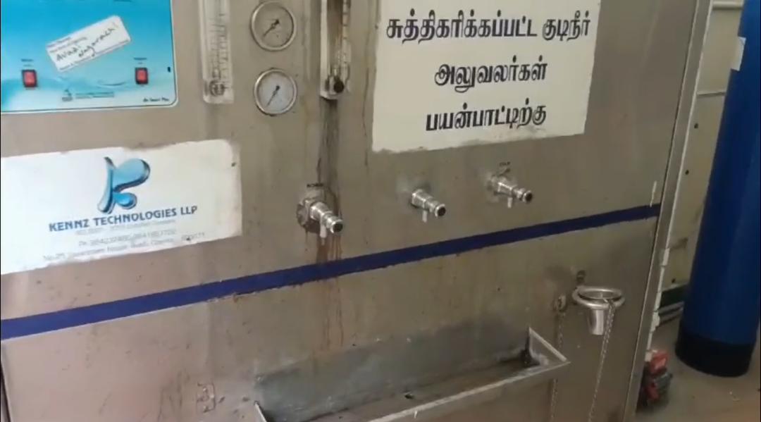 முறையான பராமரிப்பு இல்லாததால் குடிநீர் இயந்திரத்தின் உள்ளே மேல் பகுதியில் எலிகள் சுற்றி திரிந்து வருகின்றன. மேலும் இவை குடிநீர் சேமிக்கும் பகுதியில் அலைந்து திரிவதால் இந்த நீரை பருகுவோருக்கு நோய் தொற்று பரவும் அபாயம் எழுந்துள்ளது. இதே போன்று அலுவலகத்தின் வெளிப்புற பகுதியில் அமைந்துள்ள பொதுமக்கள் பயன்பாட்டிற்கு வைக்கப்பட்டுள்ள குடிநீர் முழுவதுமாக உபயோகமற்ற நிலையில் இருந்து வருகிறது.