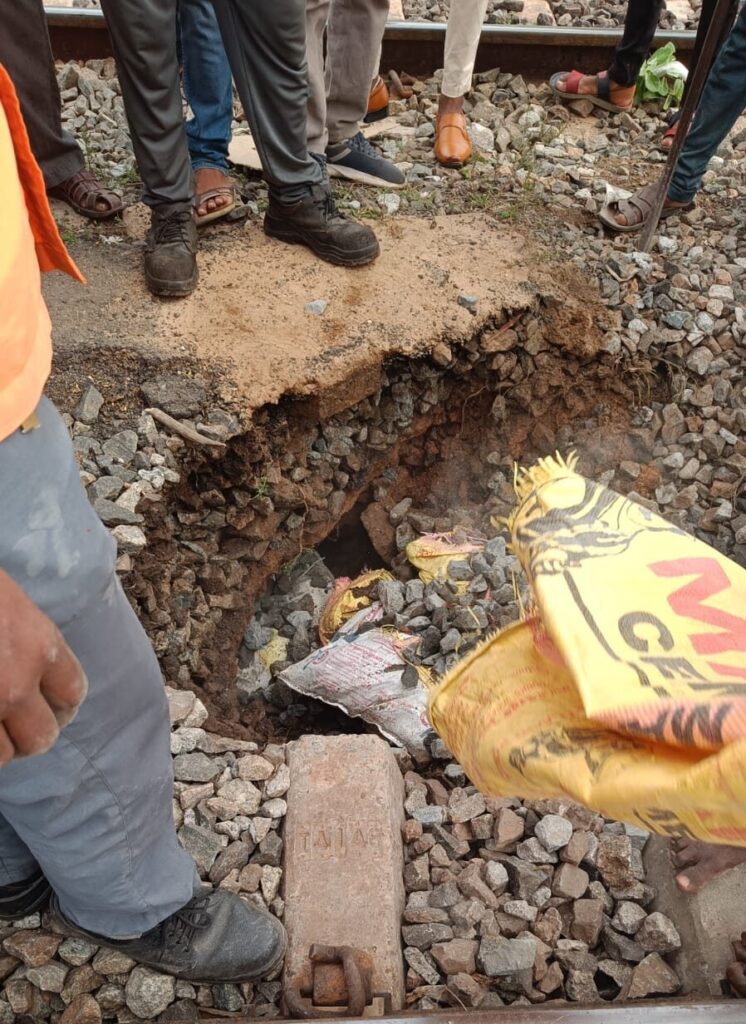 ஆவடி அடுத்த அண்ணனூர் ரயில் நிலையம் அருகே ரயில்வே தண்டவாளத்தின் நடுவில் திடீர் 5 அடி பள்ளம் ஏற்பட்டதால் சென்னையில் இருந்து திருவள்ளூர் அரக்கோணம் மார்க்கமாக செல்லக்கூடிய ரயில்களும் அரக்கோணம் திருவள்ளூர் மார்க்கமாக சென்னைக்குச் செல்லும் ரயில்களும் ஆங்காங்கே நிறுத்தப்பட்டது.