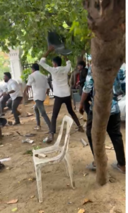 வழக்கறிஞர்கள் தங்களுக்குள்ளாகவே மாறி மாறி கைகள் மற்றும் நாற்காலிகளால் தாக்கிக் கொண்டதில் ஐந்துக்கும் மேற்பட்ட வழக்கறிஞர்களுக்கு காயம்.