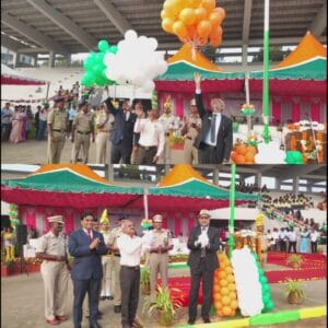 பின்னர் மூவண்ணத் கலர் பலூன் மற்றும் வெள்ளை நிற சமாதான புறாவை வானில் பறக்க விட்டார்.