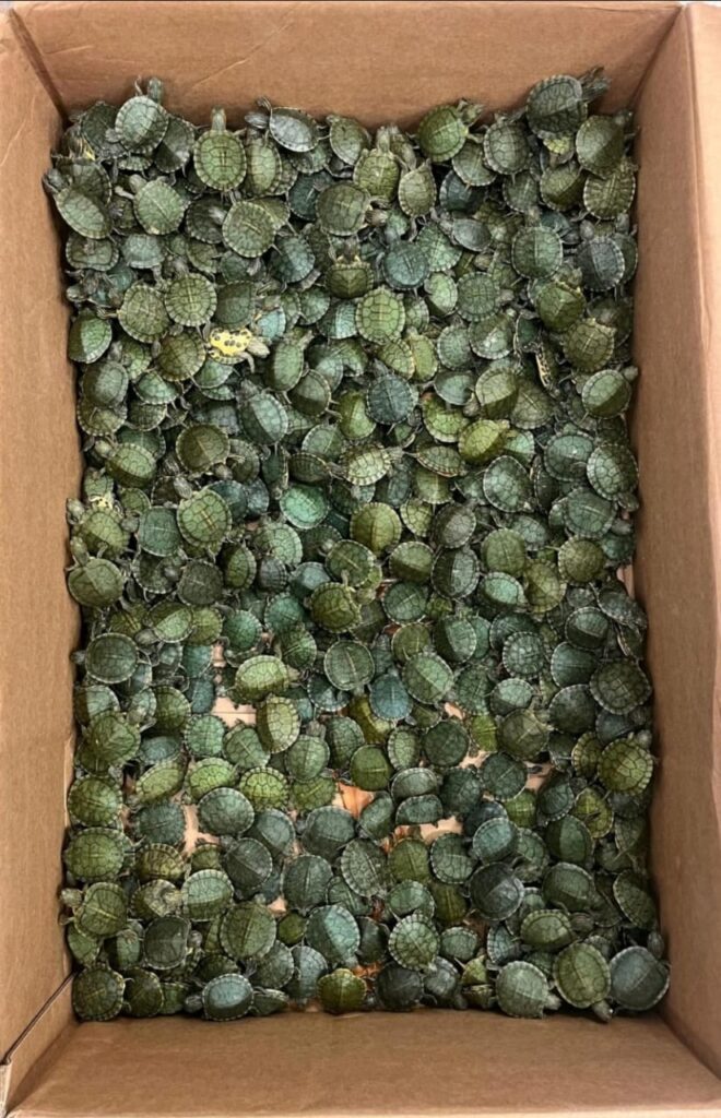 மலேசியாவிலிருந்து, சென்னைக்கு விமானத்தில் கடத்திவரப்பட்ட அரிய சிவப்பு காது நட்சத்திர ஆமைகளை கடத்திவந்த 2 நபர்களை சுங்க அதிகாரிகள் கைது செய்து விசாரணை மேற்கொண்டனர்.