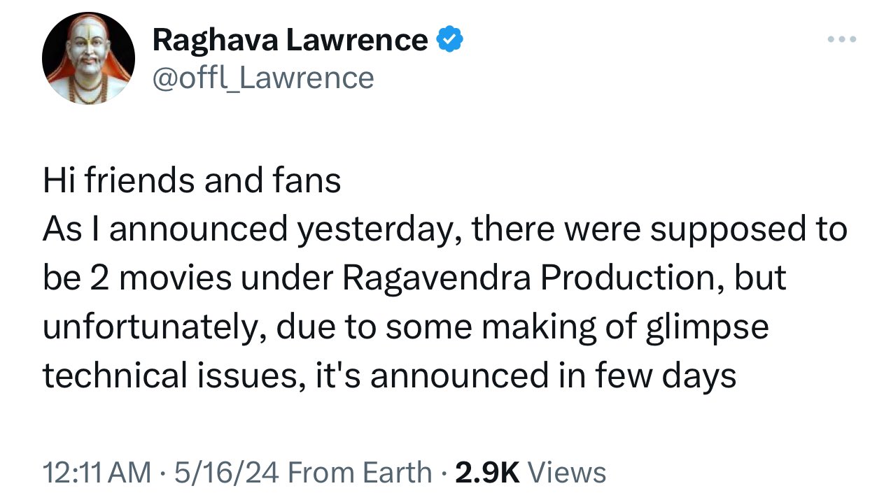 ராகவா லாரன்ஸ் தயாரிக்கும் அடுத்த இரண்டு திரைப்படங்களின் அப்டேட் இன்று வெளியாகும் என்று எதிர்பார்க்கப்பட்ட நிலையில், இன்னும் சில நாட்கள் கழித்து வெளியாகும் என்று அறிவிக்கப்பட்டுள்ளது.