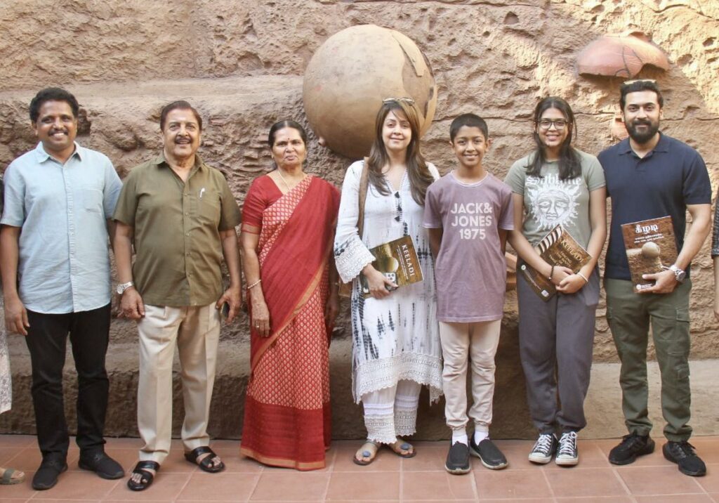 நடிகர் சூர்யா அவரது மனைவி ஜோதிகா, அப்பா சிவகுமார், அம்மா மற்றும் குழந்தைகள் உடன் சமீபத்தில் கீழடி அகழ்வாராய்ச்சி அருங்காட்சியகத்திற்கு வருகை புரிந்தார். அவர்களுடன் அமைச்சர் சு. வெங்கடேசனும் சென்றிருந்தார். இந்நிலையில் நடிகர் சூர்யா அந்தப் புகைப்படங்களை பகிர்ந்துள்ளார்.