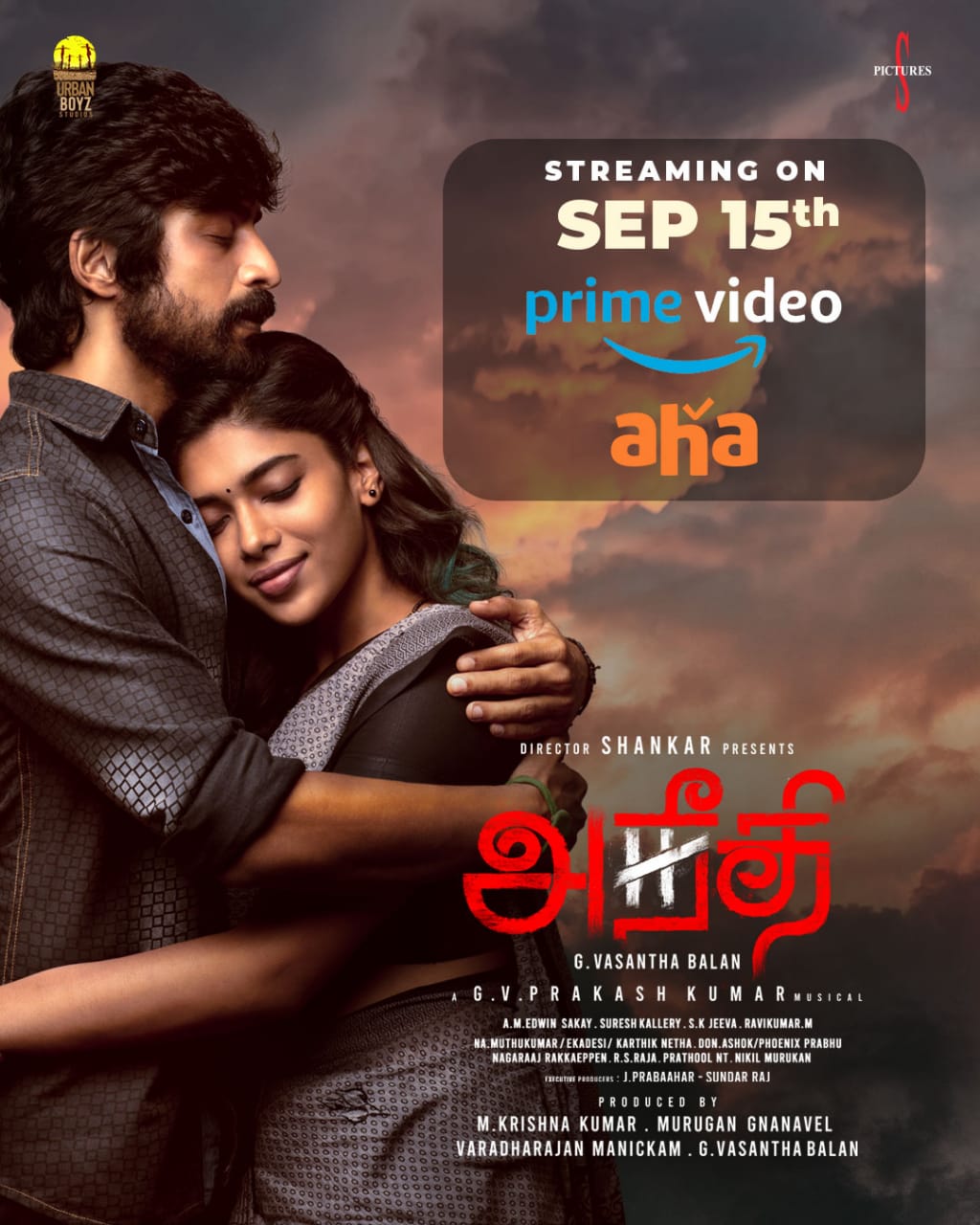 அர்ஜுன் தாஸ் நடிப்பிலும் வசந்தபாலன் இயக்கத்திலும் உருவான திரைப்படம் அநீதி. இதில் அர்ஜுன் தாஸுடன் இணைந்து துஷாரா விஜயன், வனிதா விஜயகுமார், காளி வெங்கட், அறந்தாங்கி நிஷா, சுரேஷ் சக்கரவர்த்தி உள்ளிட்டோர் நடித்துள்ளனர். திரில்லர் கதை களத்தில் உருவான இந்த படம் கடந்த ஜூலை 21ஆம் தேதி வெளியானது. இதனை வசந்த பாலனின் அர்பன் பாய்ஸ் நிறுவனமும் இயக்குனர் சங்கரின் எஸ் பிக்சர்ஸ் நிறுவனமும் இணைந்து தயாரித்துள்ளது. ஜிவி பிரகாஷ் இதற்கு இசையமைத்துள்ளார்.