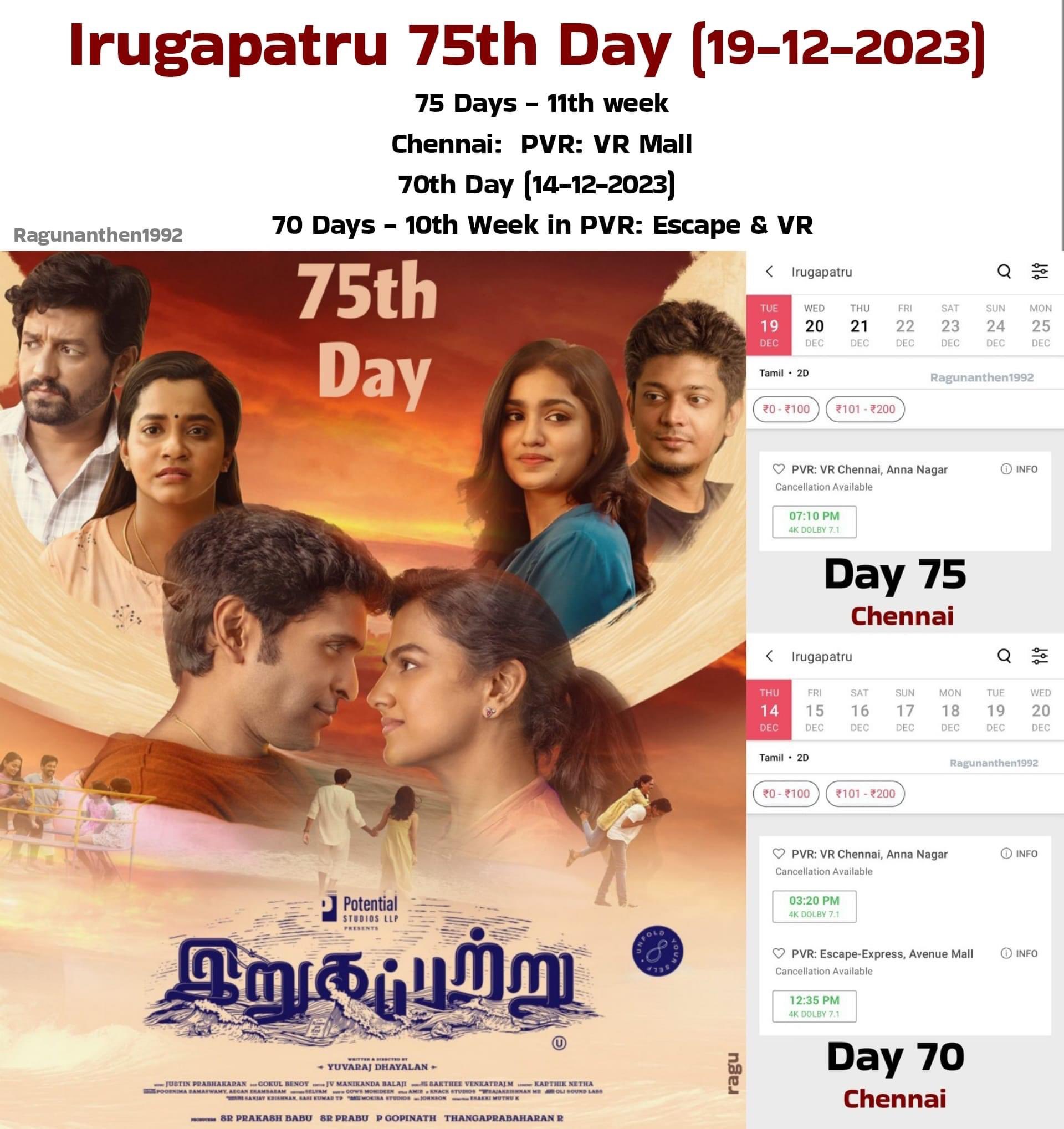 இறுகப்பற்று திரைப்படம் திரையரங்குகளில் 75 நாட்களை கடந்து ஓடி வருகிறது.