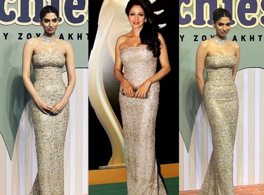 #KhushiKapoor opts for her late mom Sridevi's gown at the premiere of her debut film #TheArchies