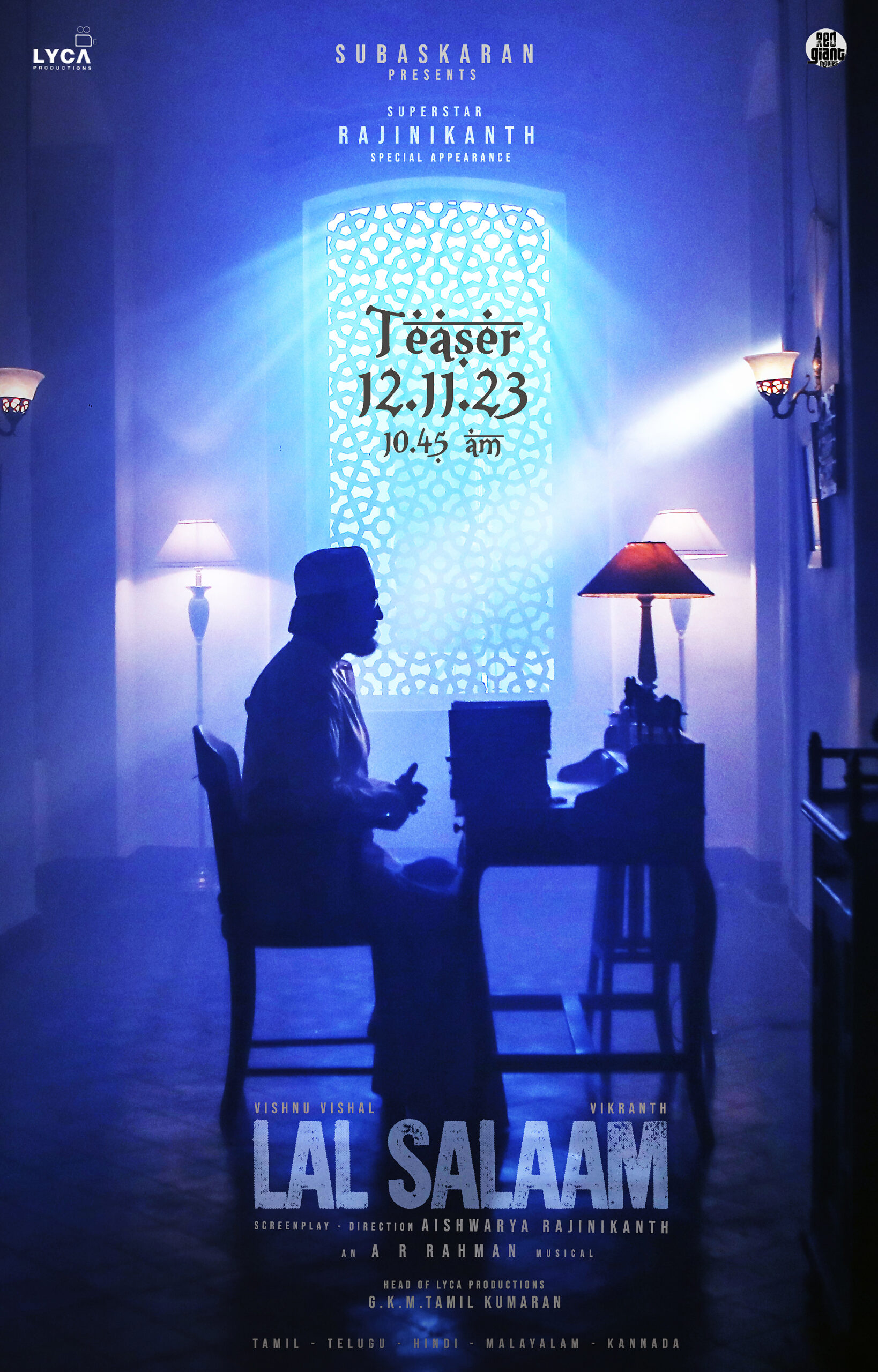 ஐஸ்வர்யா ரஜினிகாந்த் 3, வை ராஜா வை உள்ளிட்ட படங்களுக்குப் பிறகு இயக்கியுள்ள திரைப்படம் தான் லால் சலாம். இதில் விஷ்ணு விஷால் மற்றும் விக்ராந்த் இருவரும் முன்னணி கதாபாத்திரங்களில் நடித்துள்ளனர். மேலும் ரஜினியும் முக்கிய கதாபாத்திரத்தில் நடித்துள்ளார். இவருக்கு ஜோடியாக நிரோஷா நடித்துள்ளார். லைக்கா நிறுவனத்தின் தயாரிப்பில் உருவாகியுள்ள இந்த படத்திற்கு ஏ ஆர் ரகுமான் இசையமைத்துள்ளார். சமீபத்தில் படத்தின் படப்பிடிப்புகள் முழுவதும் நிறைவடைந்ததாக அறிவிக்கப்பட்டது.