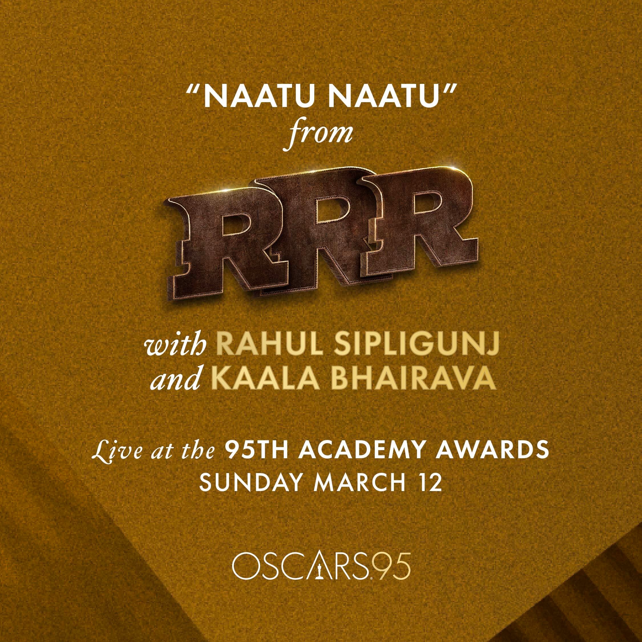 ஆஸ்கர் விருது வழங்கும் விழா மேடையில் ஆர்ஆர்ஆர் திரைப்படத்தின் நாட்டு நாட்டு பாடல் நேரடியாக அரங்கேற உள்ளது.
