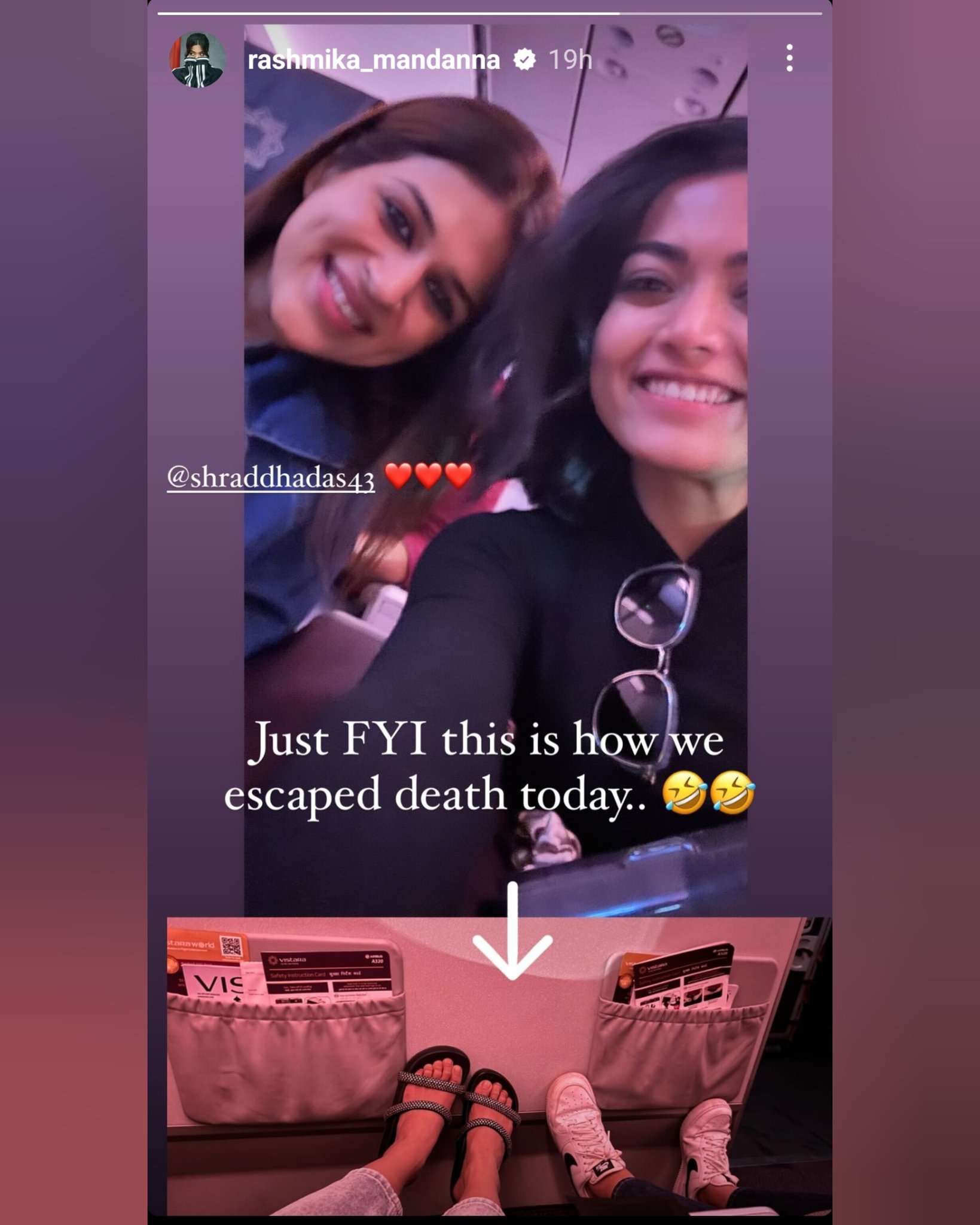 விமான பயணம் மேற்கொண்ட நடிகை ராஷ்மிகா நூலிழையில் உயிர் தப்பியுள்ள சம்பவம் பரபரப்பை ஏற்படுத்தி இருக்கிறது.