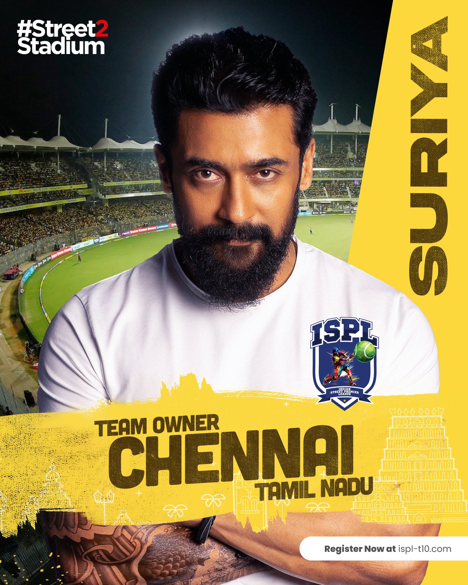 இந்தியன் ஸ்ட்ரீட் ப்ரீமியர் லீக் கிரிக்கெட் தொடரில் சென்னை அணியின் உரிமத்தை நடிகர் சூர்யா வாங்கியுள்ளார்.