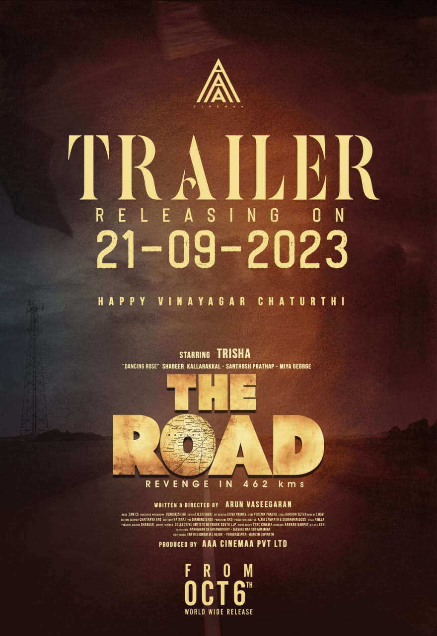 திரிஷா நடிப்பில் உருவாகியுள்ள திரைப்படம் தி ரோட். AAA சினிமாஸ் நிறுவனம் தயாரித்துள்ள இந்த படத்தை அருண் வசீகரன் இயக்கியுள்ளார். சாம் சி எஸ் இசையமைத்துள்ளார். இந்த படத்தில் திரிஷாவுடன் இணைந்து சந்தோஷ் பிரதாப், சபீர் கல்லாரக்கல் ,எம் எஸ் பாஸ்கர், மியா ஜார்ஜ், விவேக் பிரசன்னா, வேல ராம மூர்த்தி, லட்சுமி பிரியா உள்ளிட்டோர் நடித்துள்ளனர்.