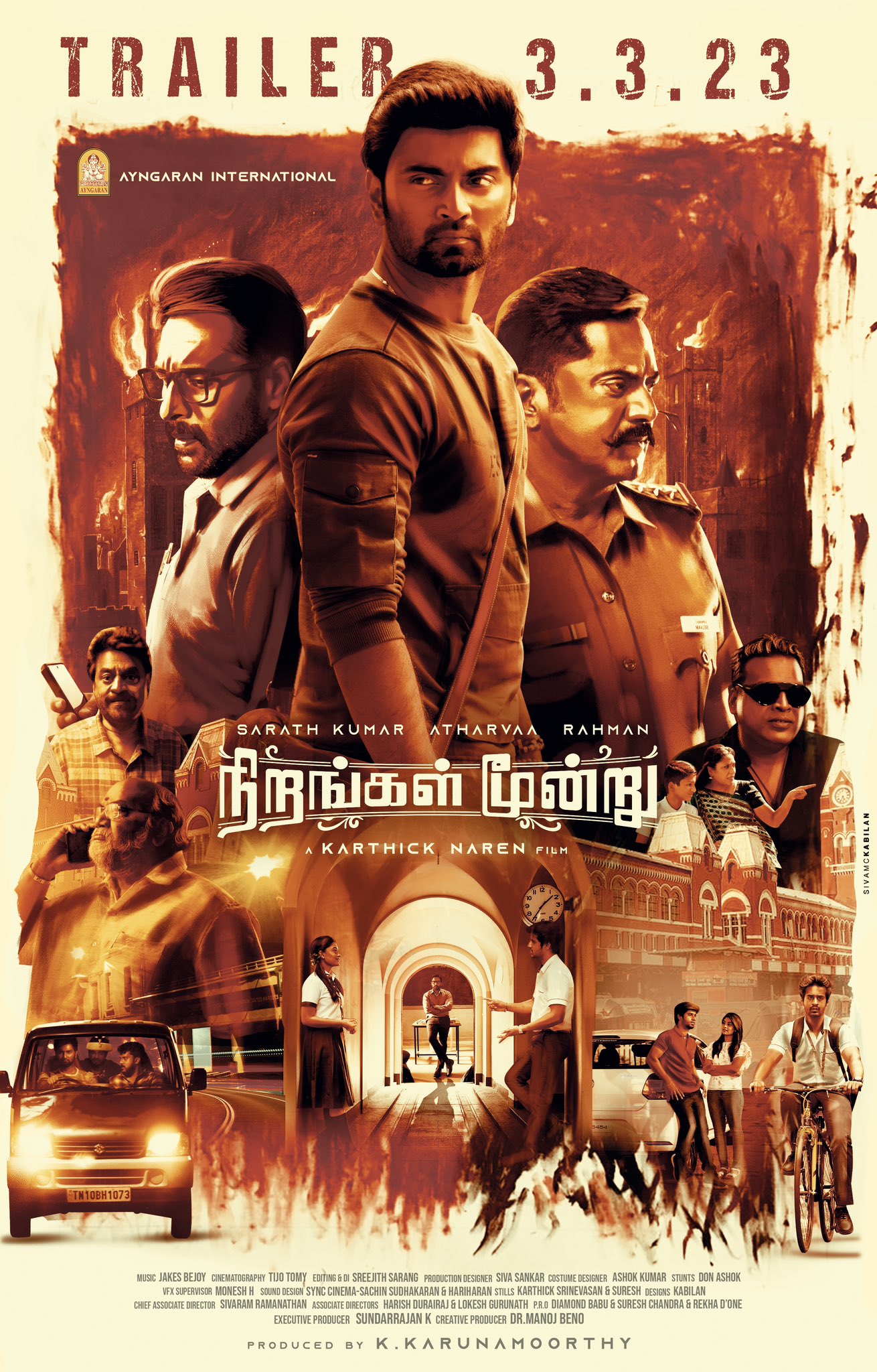 மாறன், மாஃபியா உள்ளிட்ட படங்களை இயக்கிய கார்த்திக் நரேன் இயக்கத்தில் உருவாகி வரும் திரைப்படம் நிறங்கள் மூன்று. இந்த படத்தில் அதர்வா முரளி நாயகனாக நடிக்கிறார். சரத்குமார், ரகுமான் ஆகியோர் முக்கிய கதாபாத்திரங்களில் நடிக்கின்றனர். திரில்லர் கதையம்சம் கொண்ட திரைப்படமாக இந்த படம் உருவாகிறது. இந்த படத்திற்கு ஜேக்ஸ் பிஜோய் இசை அமைக்கிறார்.