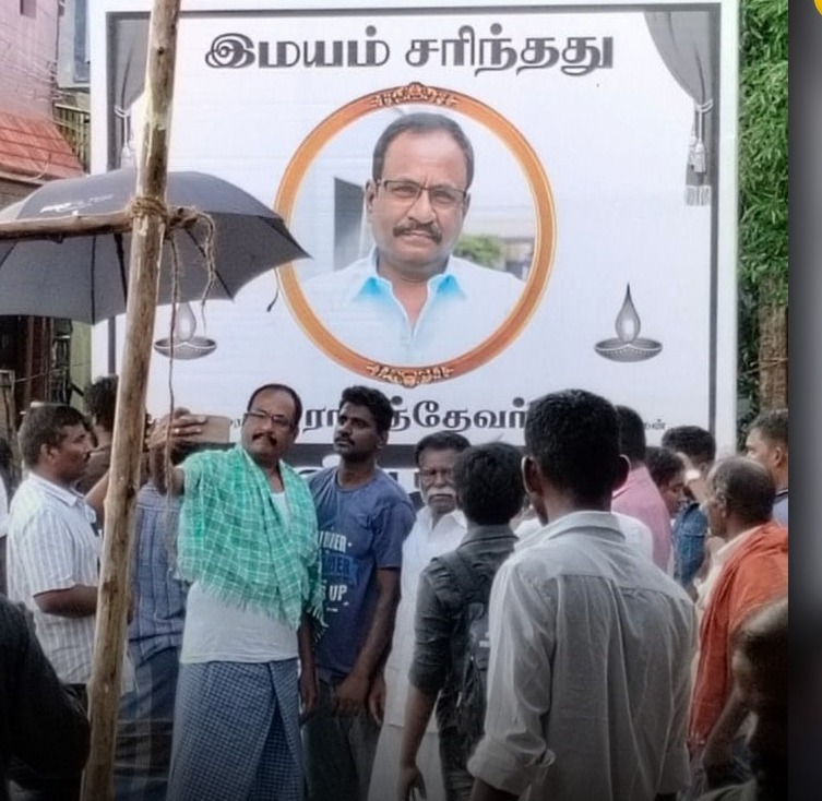 நடிகனுக்கு மட்டுமே இது சாத்தியம்… தன்னுடைய கண்ணீர் அஞ்சலி பேனர் முன்னே செல்ஃபி எடுக்கும் மாரிமுத்து