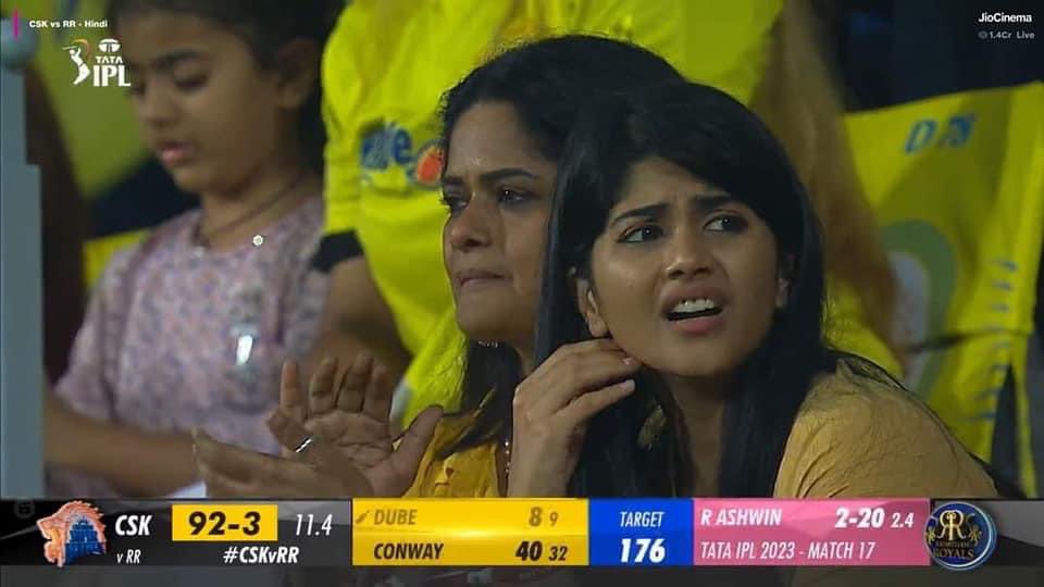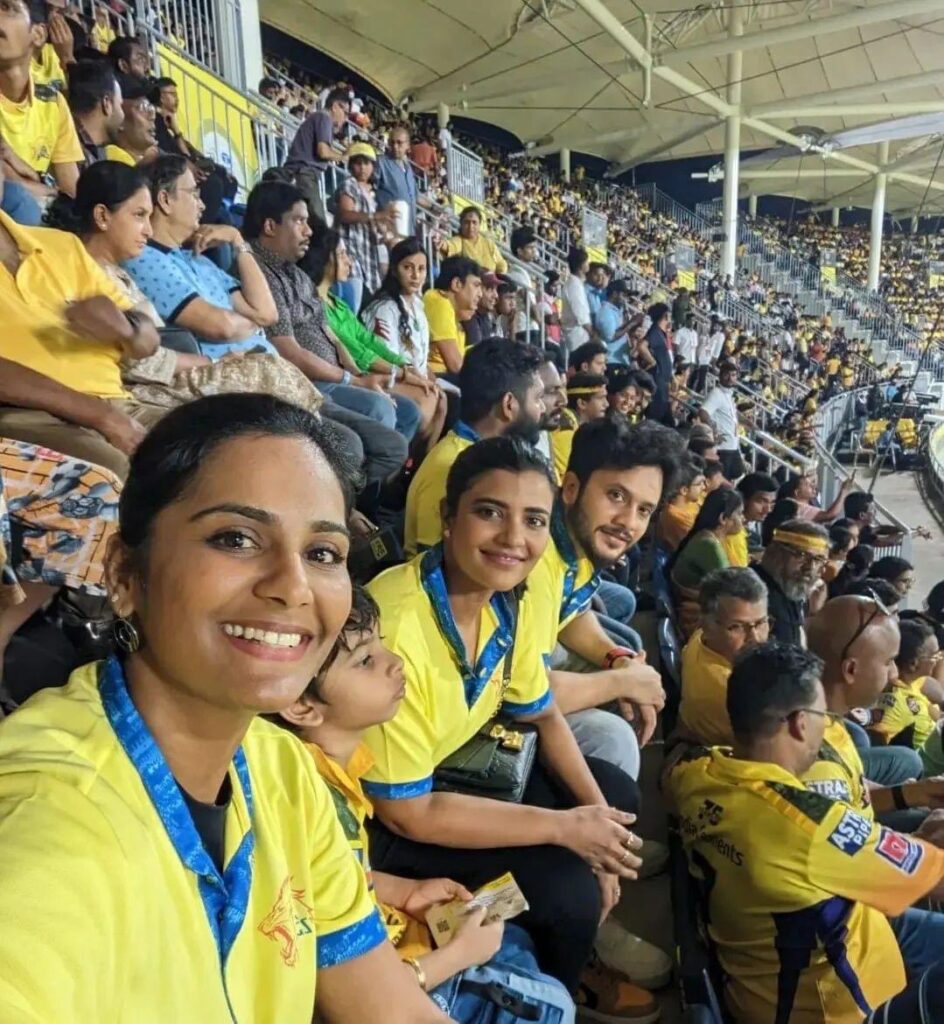 நேற்று சென்னை சேப்பாக்கம் மைதானத்தில் சென்னை சூப்பர் கிங்ஸ் அணியின் விளையாட்டைப் பார்க்க சினிமா பிரபலங்கள் குவிந்துள்ளனர்.