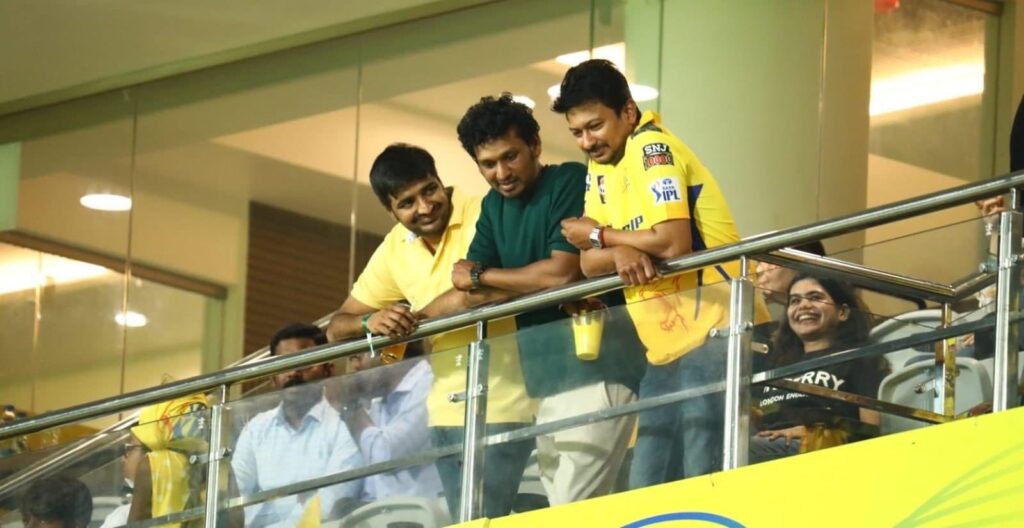 தற்போது உதயநிதி, இயக்குனர் லோகேஷ் கனகராஜ், சதீஷ், திரிஷா மற்றும் நடிகை  மேகா ஆகாஷ், ஹரிஷ் கல்யாண் மற்றும் அவரது மனைவி உள்ளிட்ட பிரபலங்கள் நேற்று சென்னை அணியின் ஆட்டத்தைக் காண நேரில் வந்துள்ளனர். அந்தப் புகைப்படங்கள் இணையத்தில் வைரலாகி வருகின்றன.