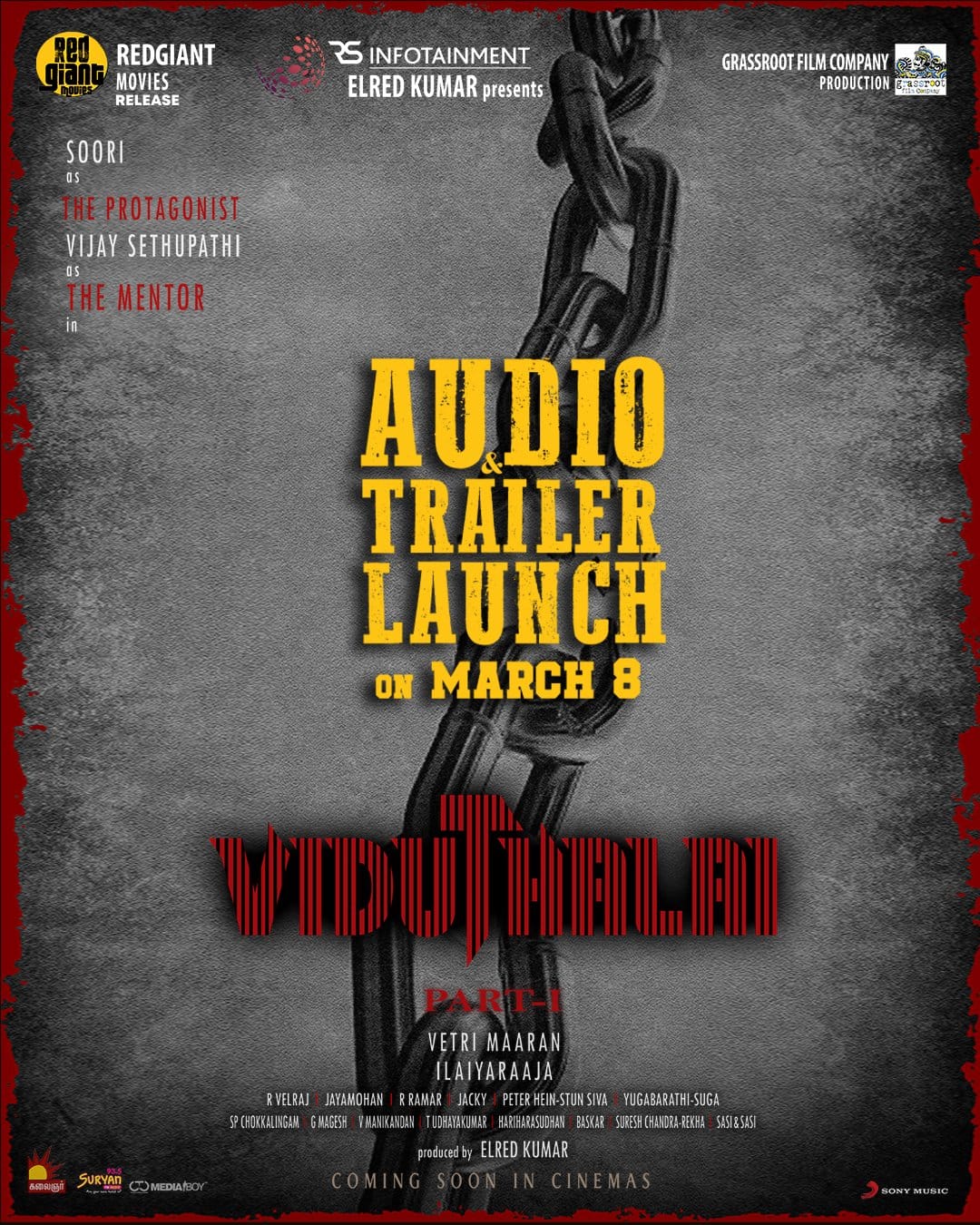 இந்நிலையில் இப்படத்தின் பாடல்கள் மற்றும் முன்னோட்டம் குறித்த அறிவிப்பை படக்குழு வெளியிட்டுள்ளது. அதன்படி விடுதலை படத்தின் பாடல்கள் மற்றும் முன்னோட்டம் வரும் மார்ச் 8-ம் தேதி வெளியாகும் என படக்குழு அறிவித்து உள்ளது.