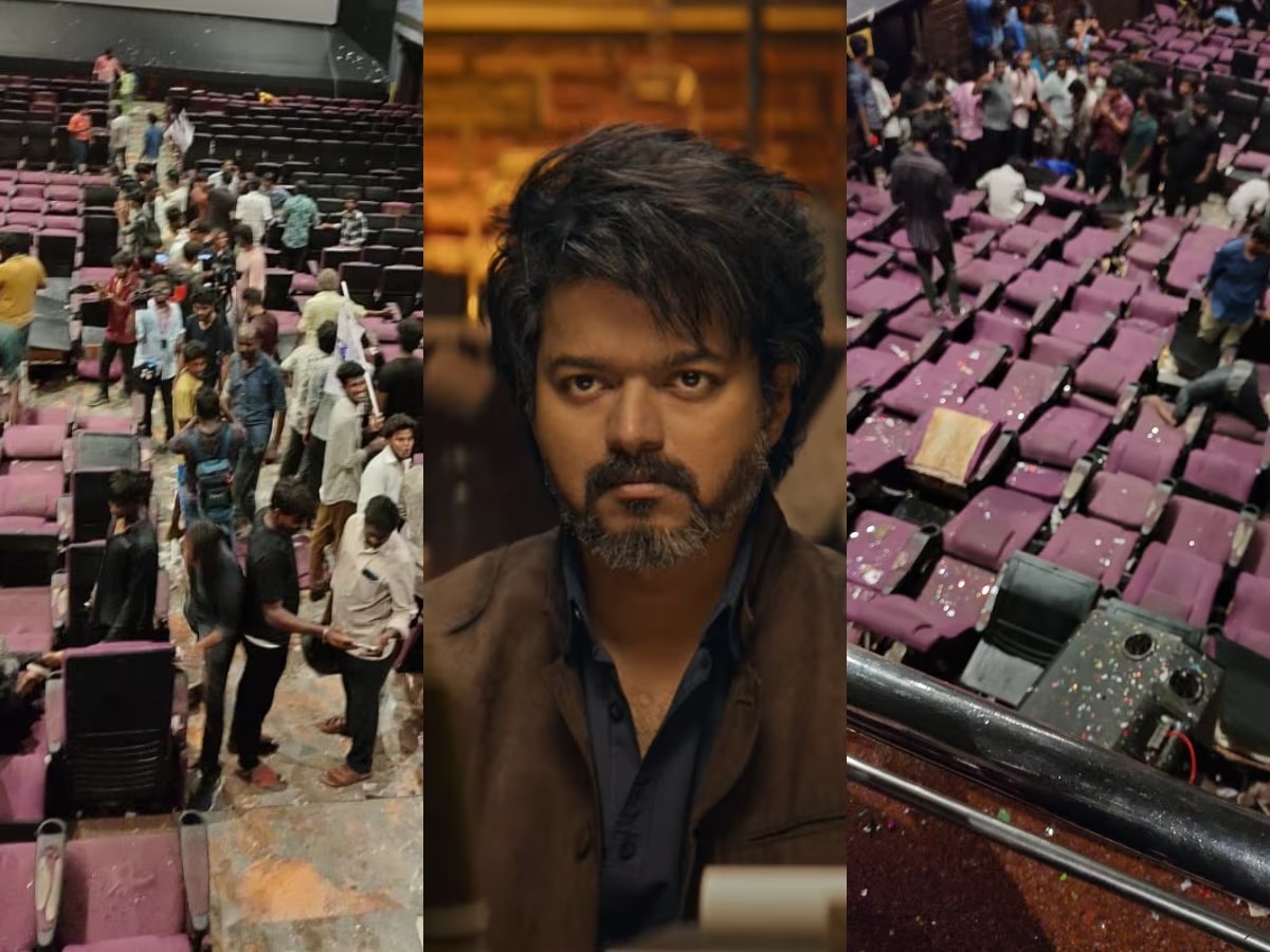 விஜய் நடிப்பில் லியோ திரைப்படம் உருவாகியுள்ளது. இதனை லோகேஷ் கனகராஜ் எழுதி, இயக்கியுள்ளார். செவன் ஸ்கிரீன் ஸ்டுடியோ நிறுவனத்தின் தயாரிப்பிலும் அனிருத் திசையிலும் இந்த படம் உருவாகியுள்ளது. மாஸ்டர் படத்தின் பிரம்மாண்ட வெற்றிக்கு பிறகு விஜய், லோகேஷ் கூட்டணியில் லியோ திரைப்படம் உருவாகியுள்ளதால் படத்தின் மீதான எதிர்பார்ப்பு ஆரம்பத்தில் இருந்தே அதிகமாக நிலவி வருகிறது. அதன்படி சில தினங்களாக அடுத்தடுத்த போஸ்டர்களை பட குழுவினர் வெளியிட்டு ரசிகர்களின் எதிர்பார்ப்பை தூண்டினர். இந்நிலையில் லியோ படத்தின் இசை வெளியீட்டு விழா ரத்து செய்யப்பட்ட நிலையில் ரசிகர்களை உற்சாகப்படுத்தும் வண்ணம் நேற்று லியோ படத்தின் டிரைலர் மாலை 6.30 மணி அளவில் வெளியிடப்பட்டது. இந்த ட்ரெய்லரை ரசிகர்கள் அனைவரும் பார்த்து ரசிக்க வேண்டும் என பெரிய திரையரங்குகளிலும் திரையிடப்பட்டது. அந்த வகையில் சென்னை ரோகினி திரையரங்கில் திரையிடப்பட்ட லியோ ட்ரெய்லரை ரசிகர்கள் வெகு விமர்சையாக கொண்டாடினர். அப்போது அவர்களின் ஆர்வத்தை கட்டுப்படுத்த முடியாமல் திரையரங்கு இருக்கைகளை கிழித்தும், உடைத்தும் சேதப்படுத்தியுள்ளனர். இது சம்பந்தமான புகைப்படங்கள் சமூக வலைதளங்களில் பகிரப்பட்டு வருகிறது.