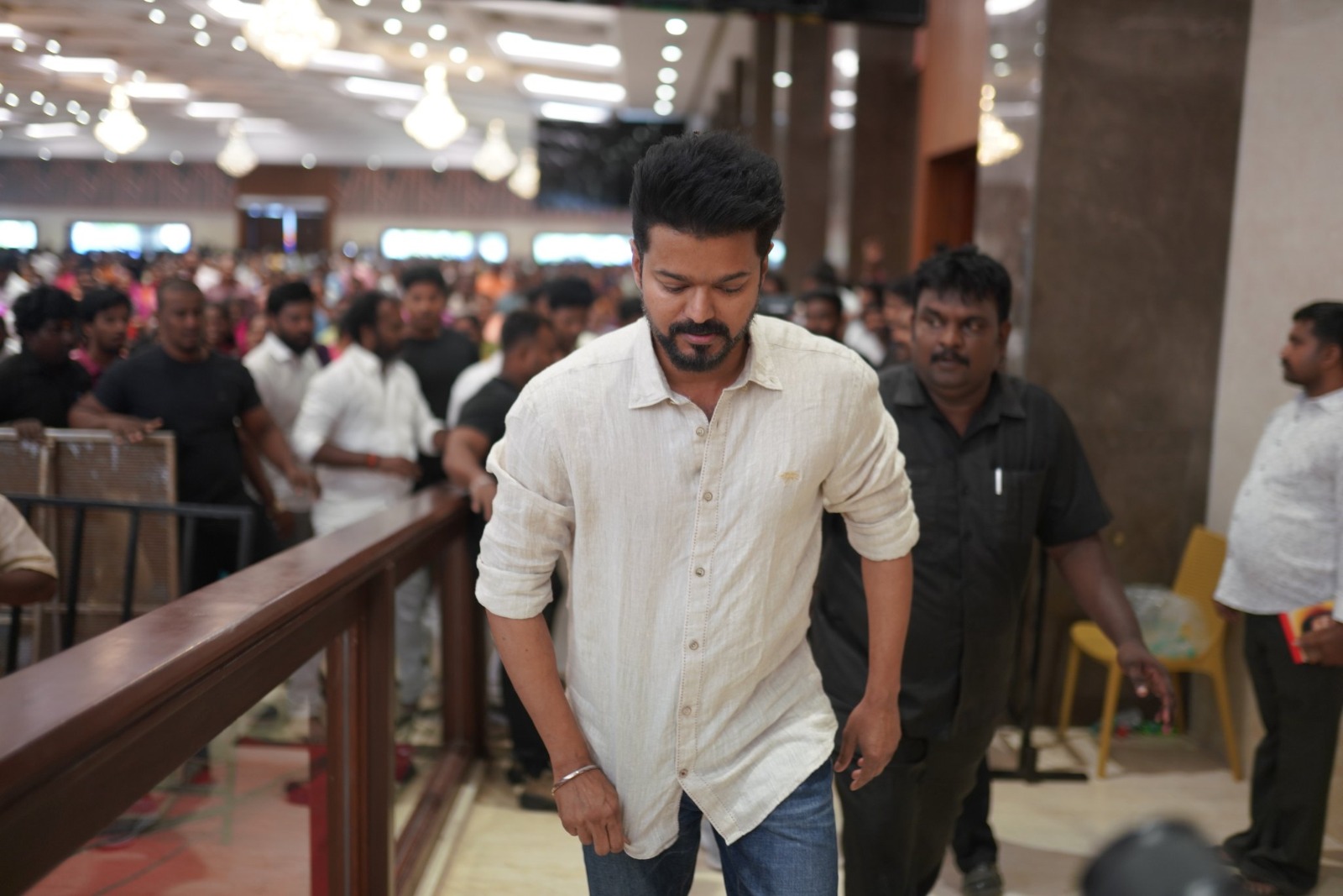 நடிகர் விஜய், மாணவர்களை சந்திக்கும் நிகழ்ச்சி சென்னை நீலாங்கரையில் உள்ள ஆர் கே கன்வென்ஷன் சென்டரில் காலை 10 மணியிலிருந்து நடைபெற்று வருகிறது. இந்நிகழ்ச்சியில் கலந்து கொண்ட தளபதி விஜய் தமிழகம் முழுவதிலும் உள்ள 234 தொகுதிகளில் 10 மற்றும் 12ஆம் வகுப்பு பொதுத் தேர்வில் முதல் மூன்று இடங்களை படித்த மாணவர்களுக்கு ஊக்கத்தொகை வழங்கி வருகிறார்.