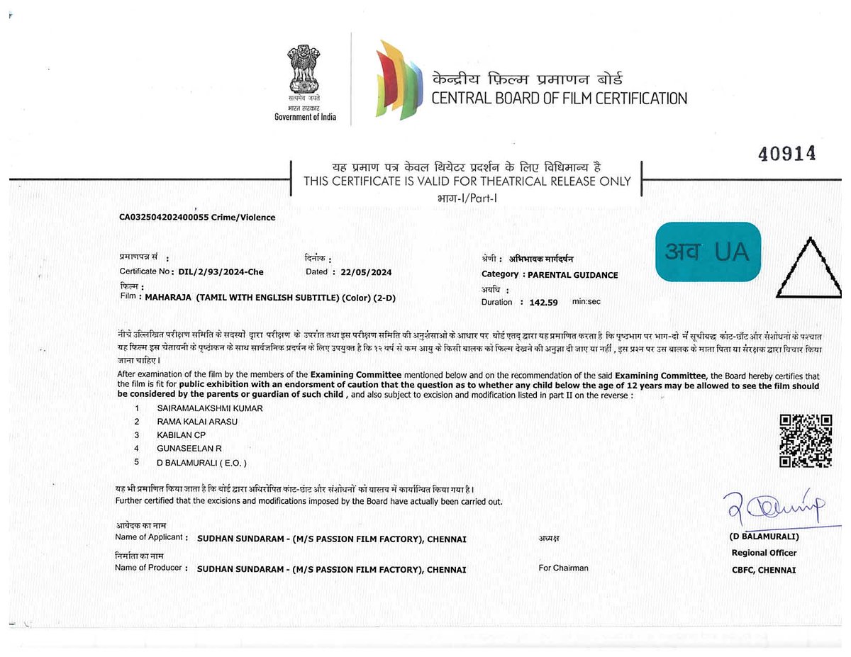 இத்திரைப்படத்தை, குரங்கு பொம்மை படத்தை இயக்கிய நித்திலன் இயக்கியிருக்கிறார். இதில் விஜய் சேதுபதியுடன் பாரதிராஜா, அனுராக் காஷ்யப், மம்தா மோகன்தாஸ், அபிராமி, நட்டி நட்ராஜ் உள்பட பலர் முக்கிய கதாபாத்திரங்களில் நடித்திருக்கின்றனர். இத்திரைப்படம் வரும் ஜூன் 14-ம் தேதி திரையரங்குகளில் வெளியாக உள்ள நிலையில், படத்தின் புரமோசன் பணிகள் தீவிரமாக நடைபெற்று வருகின்றன. அத்துடன் படத்திற்கு தணிக்கைக் குழு யுஏ சான்றிதழ் வழங்கி இருக்கிறது.
