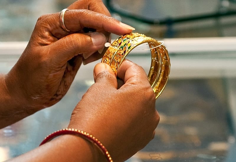 கடை ஊழியர் மகேஷ் என்பவர் தங்க வளையல் டிசைன்களை இருவரிடமும் காண்பித்துக் கொண்டிருந்தார்.