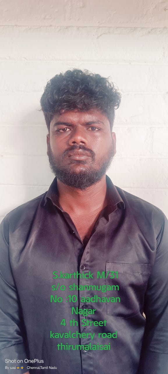திருவள்ளூர் மாவட்டம்திருமழிசை அடுத்த பிராயம்பத்தை சேர்ந்த சண்முகத்தின் மகன் கார்த்திக்(31) கார் ஓட்டுநரான இவர் மீது பல்வேறு வழக்குகள் உள்ளதாக கூறப்படுகிறது.