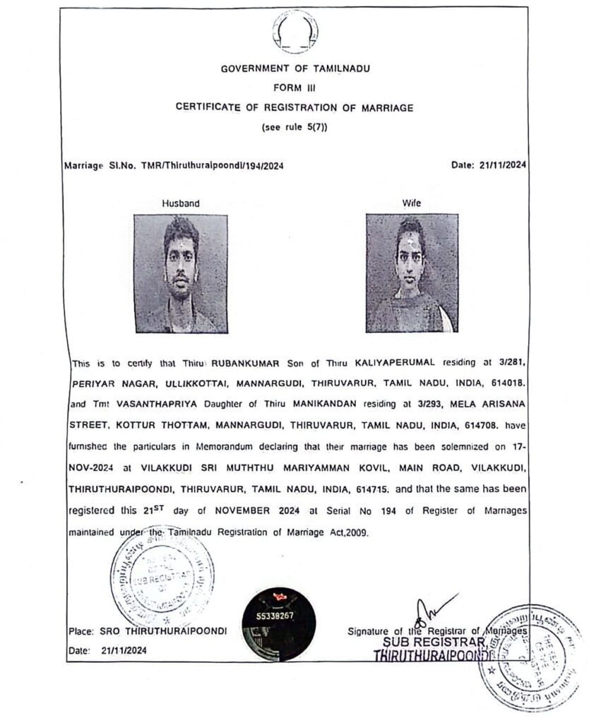இது குறித்து மகாதேவன் உறவினர்கள் கூறுகையில் வசந்தி பிரியாவை மகாதேவன் 10 ஆண்டுகளாகவும் காதலித்து இருந்ததாகவும் வசந்தி பிரியாவிற்கு எல்லா உதவிகளையும் மகாதேவன் செய்து வந்துள்ளதாகவும் கடந்த ஆறு மாதமாக உள்ளிக்கோட்டை பகுதி சேர்ந்த ரூபன்குமாருக்கும் வசந்தி பிரியாவுக்கும் காதல் ஏற்பட்டுள்ளதாகவும் இவர்கள் இருவரும் விளக்குடியில் உள்ள மாரியம்மன் கோவிலில் திருமணம் செய்து கொண்டு திருத்துறைப்பூண்டியில் உள்ள சார் பதிவாளர் அலுவலகத்தில் தங்களது திருமணத்தை பதிவு செய்துள்ளார்கள்.