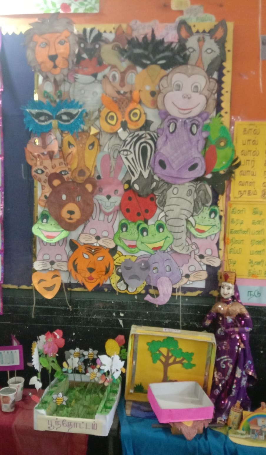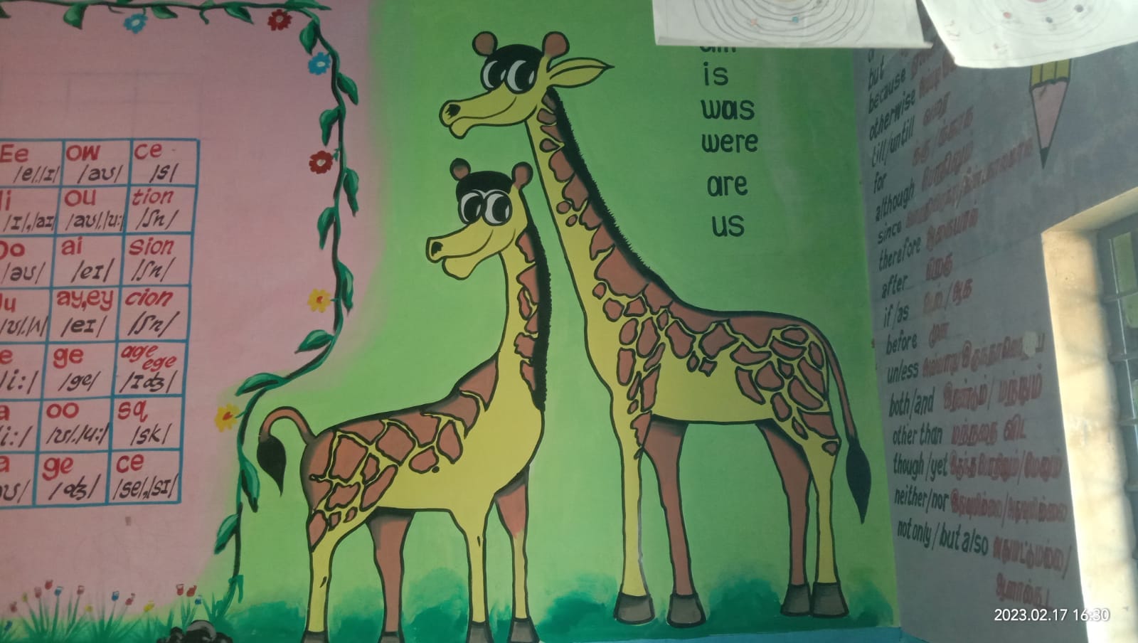 இதே போல் அனைத்து வகுப்பு அறைகளிலும் எளிய வழியில் தமிழ் மற்றும் ஆங்கிலம் கற்கும் வகையில் படங்கள் மற்றும் எண்ணும் எழுத்தும் முறையில் பயிற்சி வகுப்புகள், ஆங்கில பாடங்களை எளிதில் கற்கும் பொனடிக் வழியிலான ஆங்கில பயிற்சிகள், மனித உறுப்புகள் மற்றும் செயல்படும் விதங்கள், இயற்கை வளத்தை பாதுகாத்தல், வன உயிரினங்கள் , பறவைகள் அதன் பெயர்கள் குறித்தும் படத்துடன் மாணவர்களுக்கு விளக்கி சொல்லும் வகையில் ஆசிரியர்கள் வகுப்பறையில் படங்களை வரைந்து உள்ளனர்.