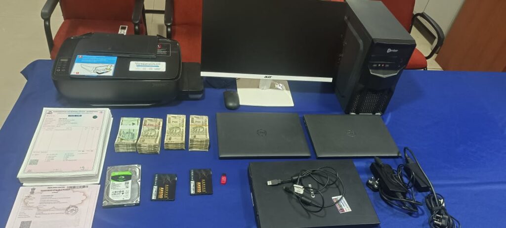 ஹரிபாபுவிடம் இருந்து இரண்டு லட்ச ரூபாய் பணம், கம்ப்யூட்டர் சிபியூ, பிரிண்டர், ஹார்ட் டிஸ்க், போலி சான்றிதழ்கள் ஆகியவை பறிமுதல் செய்தனர். பொறியியல் பட்டதாரியான ஹரிபாபு கடந்த இரண்டு வருடங்களாக போலி சான்றிதழ்கள் தயாரித்து வந்தது விசாரணையில் அம்பலமானது.