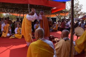 27 ஆண்டுகளுக்கு முன்பு வாழ்வியல் ஆய்வு மாணவியாக இருந்த பெண் லீலாவதி. வாழ்வியல் முறை குறித்து புத்தரை குறித்து ஆய்வு மேற்கொண்டபோது புத்தரின் மார்க்கத்தால் ஈர்க்கப்பட்டு புத்த துறவியாக துறவறம் ஏற்றார். 2001 முதல் இங்குள்ள புத்த விகாரரில் தொடர்ந்து அமைதிக்கான பிரார்த்தனைகள் நடந்து வருகிறது. மகாயானம் புத்தமத பிக்குவாக செயல்பட்டு வரும் லீலாவதி பிரார்த்தனைகளை நடத்தி வருகிறார்.