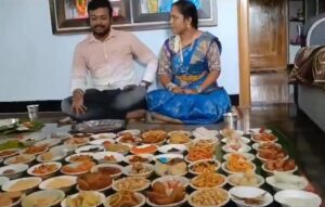 ஆந்திராவில் ஆஷாதா மாதம் முடிந்து முதல்முறையாக வீட்டிற்கு வந்த மருமகனுக்கு, அவரது மாமியார் 100 விதமான உணவுகளை சமைத்து பரிமாறிய சம்பவம் நெகிழ்ச்சியை ஏற்படுத்தியுள்ளது.