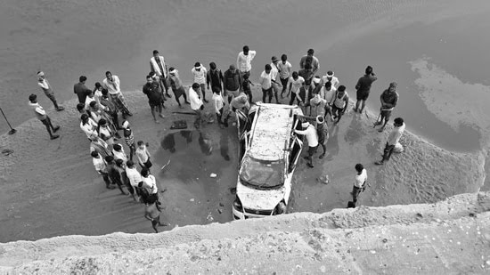 உத்தரபிரதேச மாநிலம பரேலியில் இருந்து சகோதரர்கள் உள்ளிட்ட 3 பேர் படாவுன் மாவட்டத்தில் உள்ள டேடாகஞ்ச் நோக்கி காரில் சென்றுள்ளனர். ஃபரித்பூர் பகுதியில் உள்ள ராமகங்கா நதியின் மீது கட்டப்பட்ட பாலத்தில் சென்றபோது, பாலம் உடைந்திருந்ததால் கார் ஆற்றில் கவிழ்ந்து விபத்திற்குள்ளானது. இதனை கண்ட அந்த பகுதி மக்கள் விரைந்து சென்று அவர்களை மீட்க முயன்றனர். எனினும் இந்த விபத்தில் 3 பேரும் சம்பவ இடத்திலேயே பரிதாபமாக உயிரிழந்தனர்.