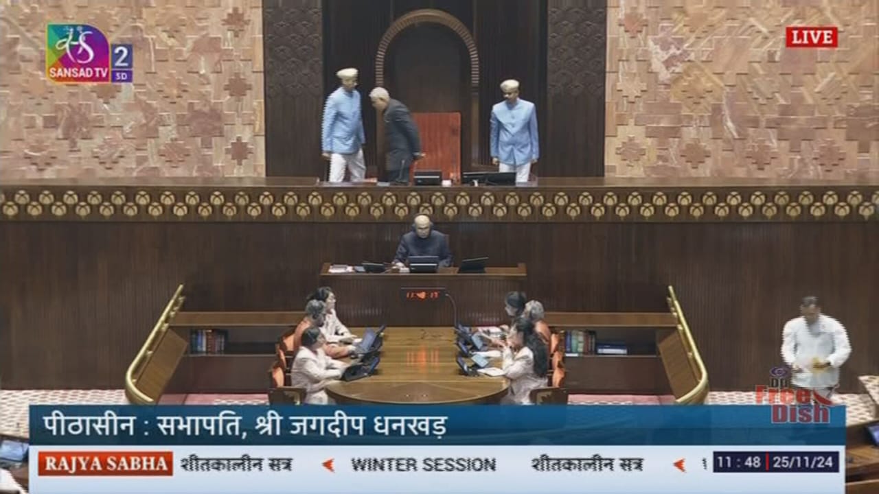 டெல்லியில் நாடாளுமன்ற குளிர்கால கூட்டத்தொடர் இன்று தொடங்கியது. இந்த கூட்டத்தில் மறைந்த உறுப்பினர்களுக்கு இரங்கல் தீர்மானம் வாசிக்கப்பட்டு பகல் 12 மணி வரை அவை ஒத்திவைக்கப்பட்டது.  இதனை தொடர்ந்து, மாநிலங்களவையில் அதானி விவகாரம் குறித்து எதிர்க்கட்சித் தலைவர் மல்லிகார்ஜுன கார்கே கேள்வி எழுப்பினார். அப்போது கார்கேவுக்கும்,  அவைத் தலைவர் ஜெகதீப் தன்காருக்கும் இடையே காரசார வாதம் ஏற்பட்டது.  இதனை அடுத்து எதிர்க்கட்சிகள் தொடர்ந்து முழக்கமிட்டனர். இதனால் மாநிலங்களவையை நாள் முழுவதும் ஒத்திவைத்து அவைத்தலைவர் ஜெகதிப் தன்கர் உத்தரவிட்டார்.
