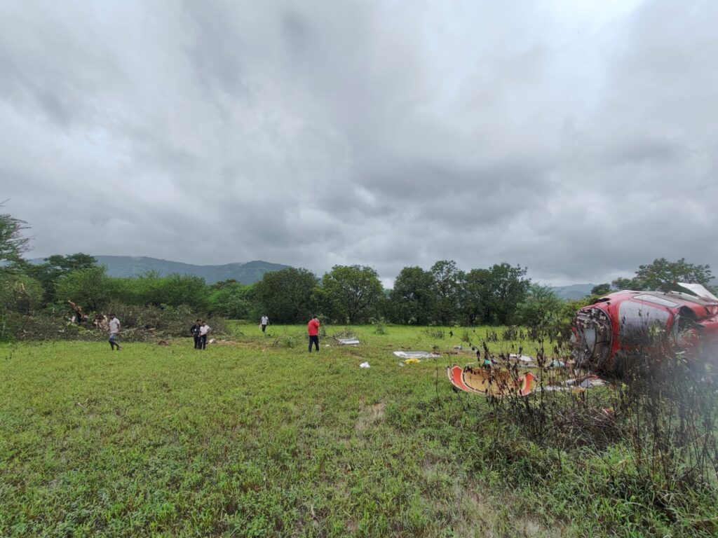 மகாராஷ்டிரா மாநிலம் மும்பையை சேர்ந்த தனியார் நிறுவனத்துக்கு சொந்தமான AW 139 வகையை சேர்ந்த ஹெலிகாப்டர் விமானி உள்ளிட்ட 4 பயணிகளுடன், தெலுங்கானா தலைநகர் ஐதராபாத்துக்கு சென்று கொண்டிருந்தது. புனே மாவட்டம் பவுட் என்ற சென்றபோது திடீரென கட்டுப்பாட்டை இழந்த ஹெலிகாப்டர் வயல் வெளியில் விழுந்து நொறுங்கியது.