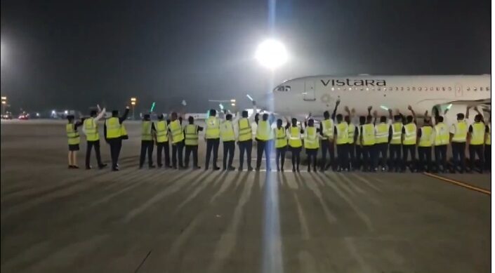 இந்த நிலையில், குஜராத் மாநிலம் அகமதாபாத்தில் இருந்து விஸ்தாரா விமானம் டெல்லிக்கு தனது கடைசி பயணத்தை மேற்கொண்டது. டெல்லி புறப்பட்ட விஸ்தாரா விமானத்திற்கு, அந்த நிறுவன பணியாளர்கள் ஒன்றாக நின்று விமானத்திற்கு கை அசைத்து பிரியாவிடை கொடுத்தனர்.