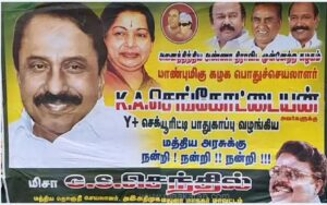 இந்நிலையில், மதுரை மாவட்டம், திருமங்கலத்தில் பஸ் ஸ்டாண்ட், மறவன்குளம், இ.பி.ஸ்டாப் உள்ளிட்ட பல்வேறு இடங்களில் மதுரை மாநகர் மாவட்ட மத்திய தொகுதி அதிமுக செயலாளர் மிசா செந்தில் என்பவரின் பெயரில் போஸ்டர்கள் ஒட்டப்பட்டுள்ளன. அதில், அனைத்திந்திய அண்ணா திராவிட முன்னேற்ற கழக பொதுச்செயலாளர் கே.ஏ.செங்கோட்டையன் அவர்களுக்கு ஒய்.பிளஸ் பாதுகாப்பு வழங்கிய ஒன்றிய அரசுக்கு நன்றி, நன்றி, நன்றி என குறிப்பிடப்பட்டுள்ளது. இதுதவிர அண்ணா, எம்ஜிஆர், ஜெயலலிதா, முன்னாள் அமைச்சர்கள் வேலுமணி, தங்கமணி மற்றும் ராஜன் செல்லப்பா எம்எல்ஏ ஆகியோரது படங்கள் போஸ்டரில் இடம்பெற்றுள்ளன.
