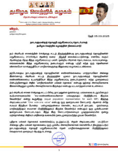 இந்த மிக முக்கியமான தொகுதி மறுசீரமைப்பு விஷயத்தில் தமிழக வெற்றிக் கழகம், தமிழகத்தின் அனைத்து அரசியல் கட்சிகளுடனும் தோளோடு தோள் நின்று இணைந்து போராடும்; மேலும் தமிழக வெற்றிக் கழகத்தின் தொண்டர்கள் ஒவ்வொருவரும் தங்கள் இறுதி மூச்சு உள்ளவரை தமிழகத்தின் நலனைக் காப்போம் என்பதை உறுதியுடன் தெரிவித்துக்கொள்கிறேன்.