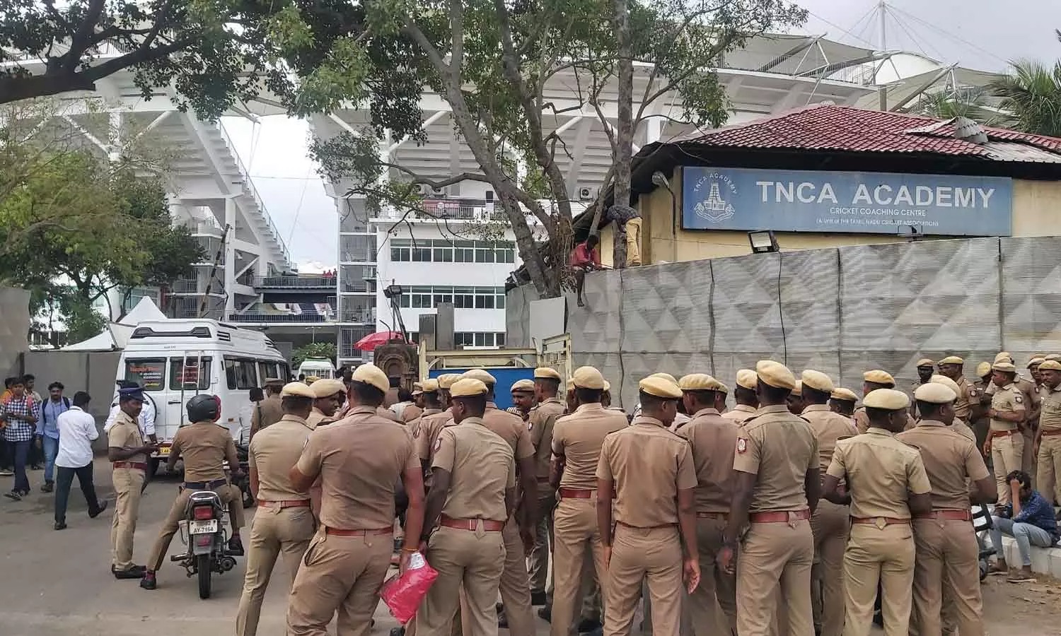 நீண்ட வரிசையில் ரசிகர்கள் நின்று ஸ்டேடியத்திற்குள் நுழைந்தனர். தமிழ்நாடு கிரிக்கெட் சங்கத்தின் உறுப்பினர்களும், போலீசாரும் இணைந்து ரசிகர்களுக்கு எந்த நுழைவு வாயில் வழியாக ஸ்டேடியத்திற்குள் செல்ல வேண்டும் என்று டிக்கெட்டுகளை பார்த்து அனுப்பி வைத்தனர். டிக்கெட் இல்லாத ரசிகர்கள் தங்களுக்கு டிக்கெட் கிடைத்து விடாதா? என்ற ஏக்கத்தில் ஸ்டேடியத்தை சுற்றி வலம் வந்தனர்.