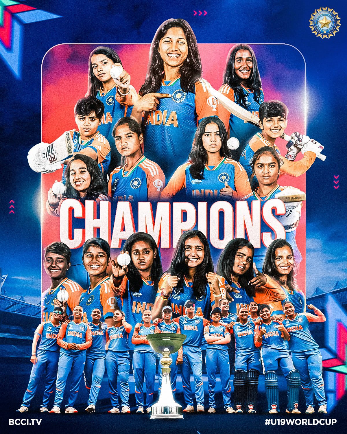 இந்த நிலையில், 2-வது முறையாக சாம்பியன் பட்டம் வென்ற இந்திய மகளிர் அணிக்கு இந்திய கிரிக்கெட் வாரியமான பிசிசிஐ பாராட்டு தெரிவித்துள்ளது. அத்துடன் இந்திய அணிக்கு ரூ.5 கோடி பரிசுத்தொகையும் அறிவித்துள்ளது. அதன்படி ஜூனியர் மகளிர் அணி வீராங்கனைகள் மற்றும் தலைமை பயிற்சியாளர் நூசின் அல் காதீர் தலைமையிலான பயிற்சியாளர் குழுவினருக்கு பரிசுத் தொகை வழங்கப்பட உள்ளது.