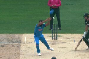 7வது ஓவரின் போது, அவர் வீசிய பந்தை பிடிக்க முயன்றபோது, அவரது கையில் பலத்த காயம் ஏற்பட்டது. இதன் காரணமாக அவரது விரலில் இருந்து இரத்தம் கொட்டியது. அவரது கை முழுவதும் இரத்தத்தால் நனைந்திருந்தது. அவர் உடனடியாக ஒரு பிசியோதெரபிஸ்ட்டின் உதவியை நாட வேண்டியிருந்தது. இதனால் அவர், ரச்சின் ரவீந்திராவின் ஒரு முக்கியமான கேட்சையும் அவர் தவறவிட்டார்.