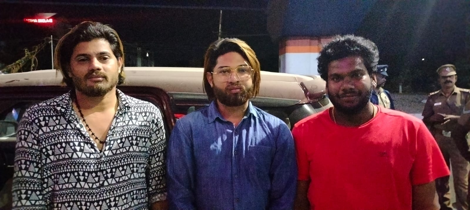 அதில் கொல்லம் திருநெல்லை பாலக்காட்டை சேர்ந்த ஜாய் என்பவரின் மகன் திலீப் (33), பாலக்காடு புதூர் டெம்பிள் வீதியை சேர்ந்த சுரேஷ் மகன் கிஷோர் (23), மாங்கரையை சேர்ந்த உஜ்ஜயனார் மகன் சமீர் (30) என்றும் இவர்கள் குரும்படம் எடுப்பதும் மற்றும் யூ டியூப் சேனல் நடிகர்கள் என்பதும் தெரிய வந்தது.