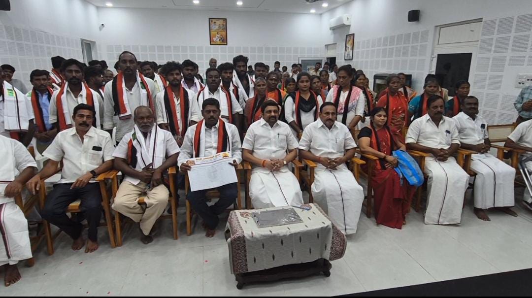 நாமக்கல் மாவட்ட நாம் தமிழர் கட்சி முன்னாள் மாவட்ட செயலாளர் வினோத்குமார் தலைமையில் 100-க்கும் மேற்பட்டோர் அக்கட்சியில் இருந்து விலகி எம்.பி., ராஜேஷ்குமார் முன்னிலையில் திமுகவில் இணைந்தனர்.